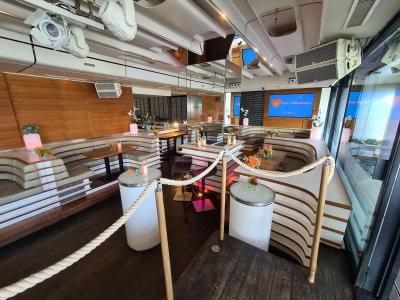 - Fully equipped music, sound, and lighting system with a professional DJ booth