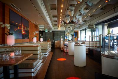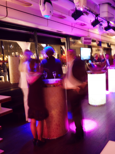 - Mixed seating with high tables, bridge tables, and lounges