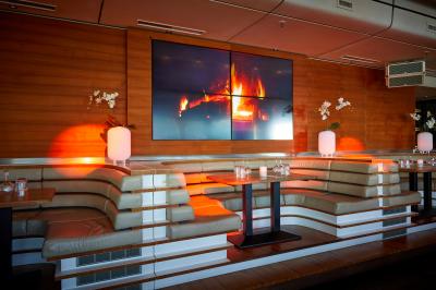 - There is an indoor area with a lounge atmosphere, a weather-independent winter garden, and a terrace with awning and heaters.